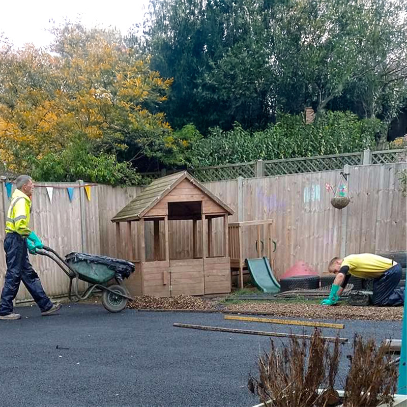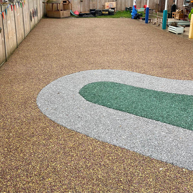 The nursery’s playground, which previously had a muddy surface, has been upgraded to our durable Rubber SafaMulch surface — complete with a specially designed scooter track.